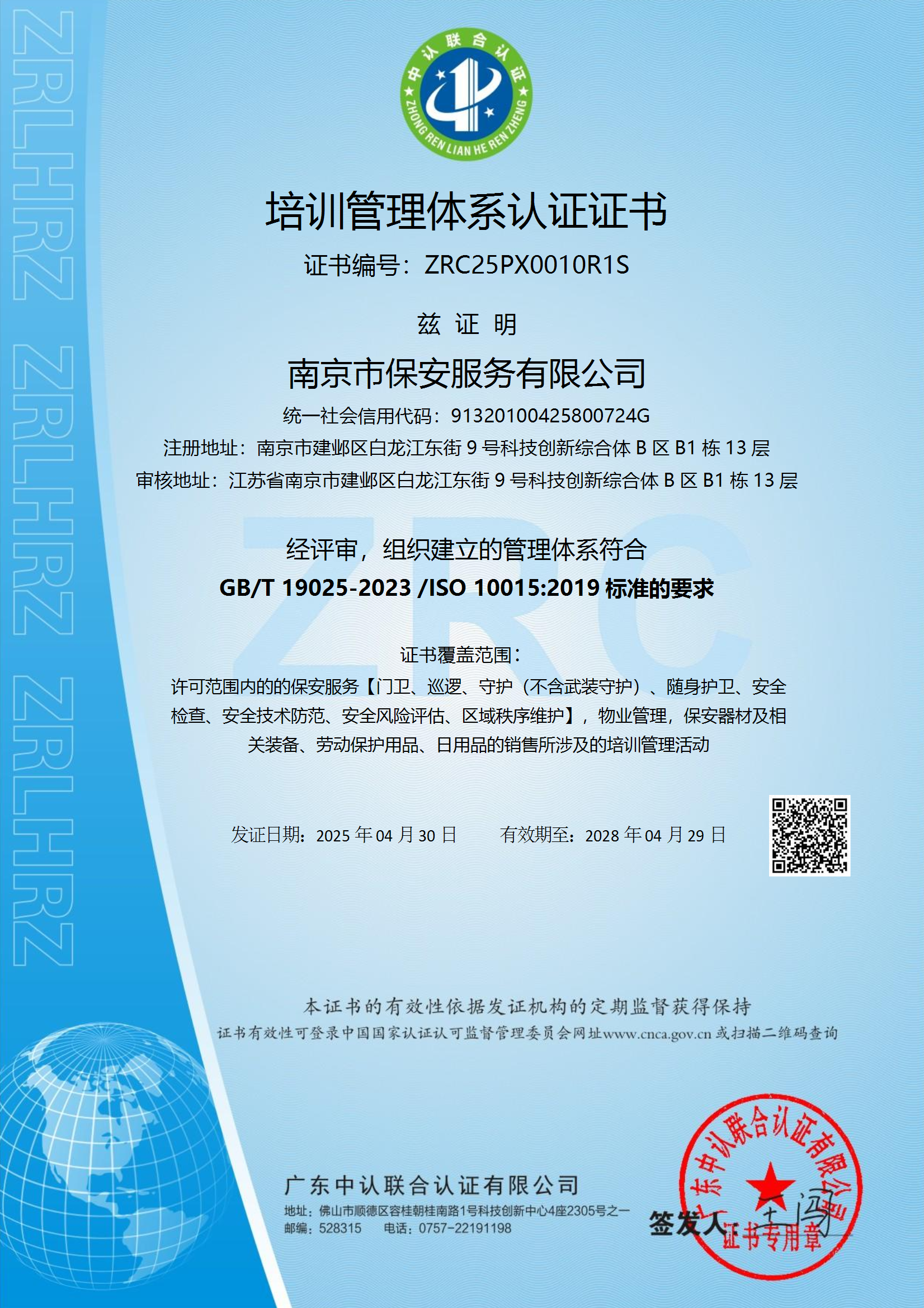 南京市保安服務有限公司(原南京市保安服務總公司)成立于1987年4月,是一個有著悠久安保經營歷史和安保經驗沉淀的大型國有保安企業,現為中國保安協會常務理事單位,江蘇省保安協會常務理事單位,南京市保安協會副會長單位,江蘇省一級保安服務公司。